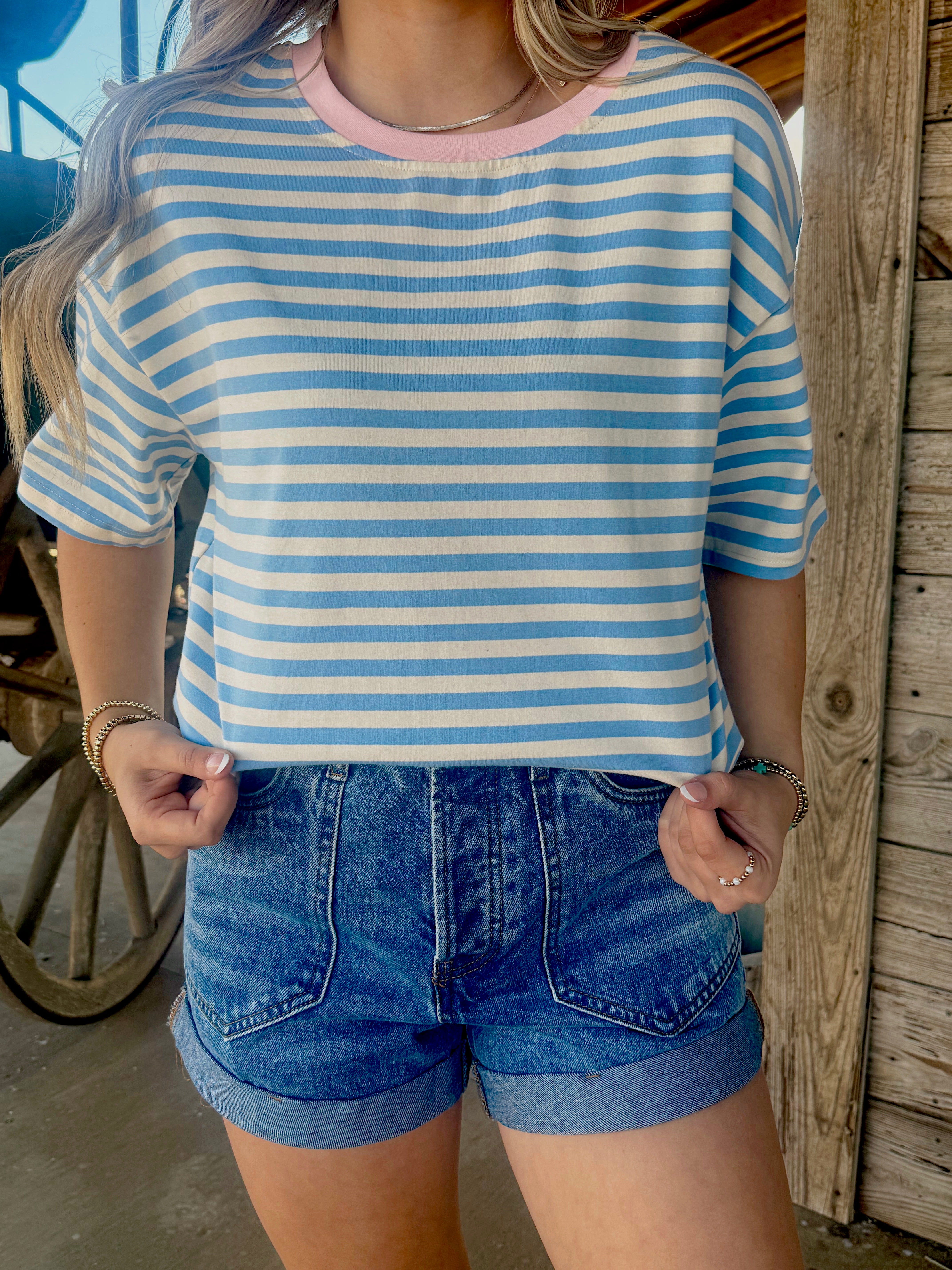 Blue/Pink Stripe Tee