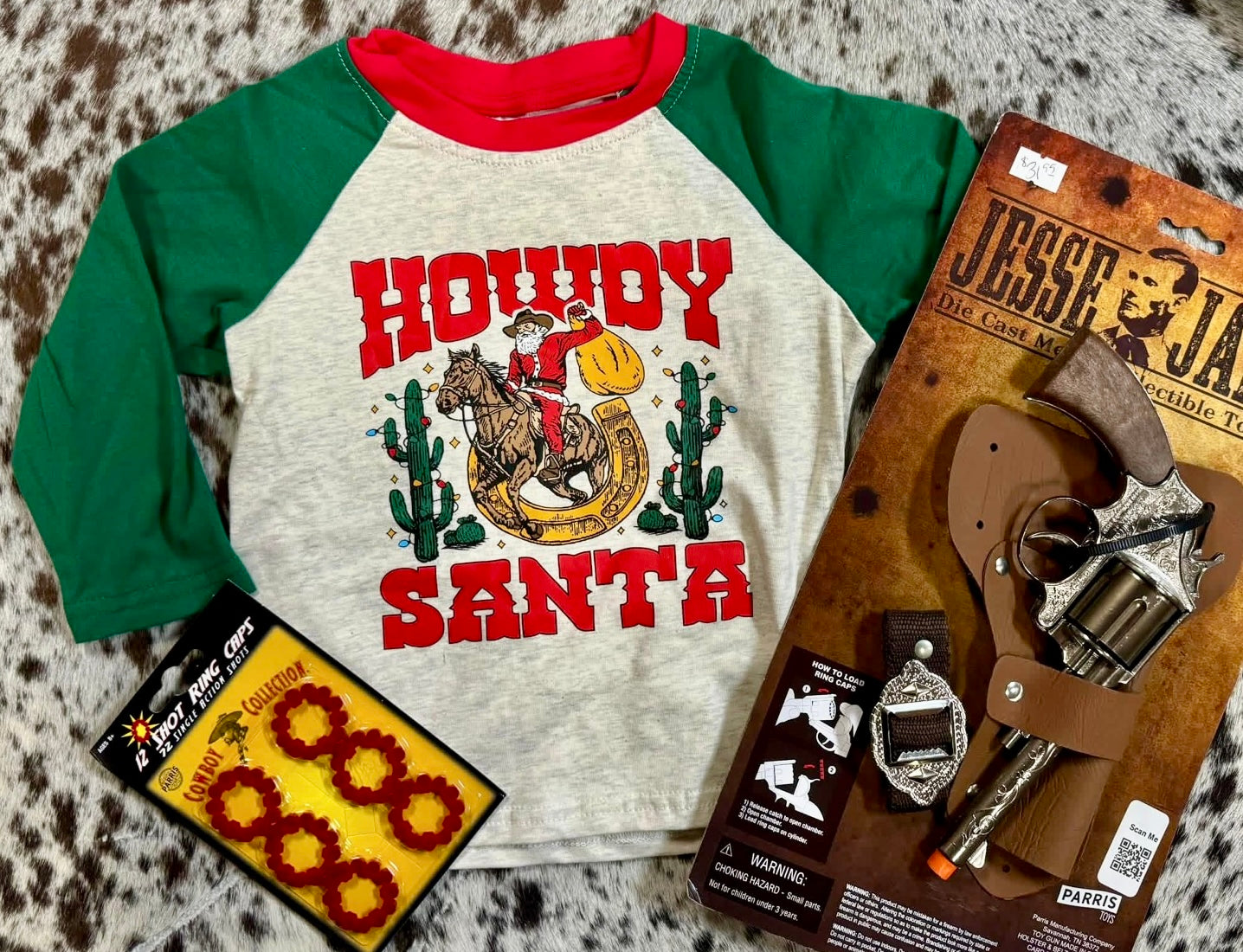 Howdy Santa Kids Christmas Tee - Youth Large is backordered and will ship as soon as it is back in stock.