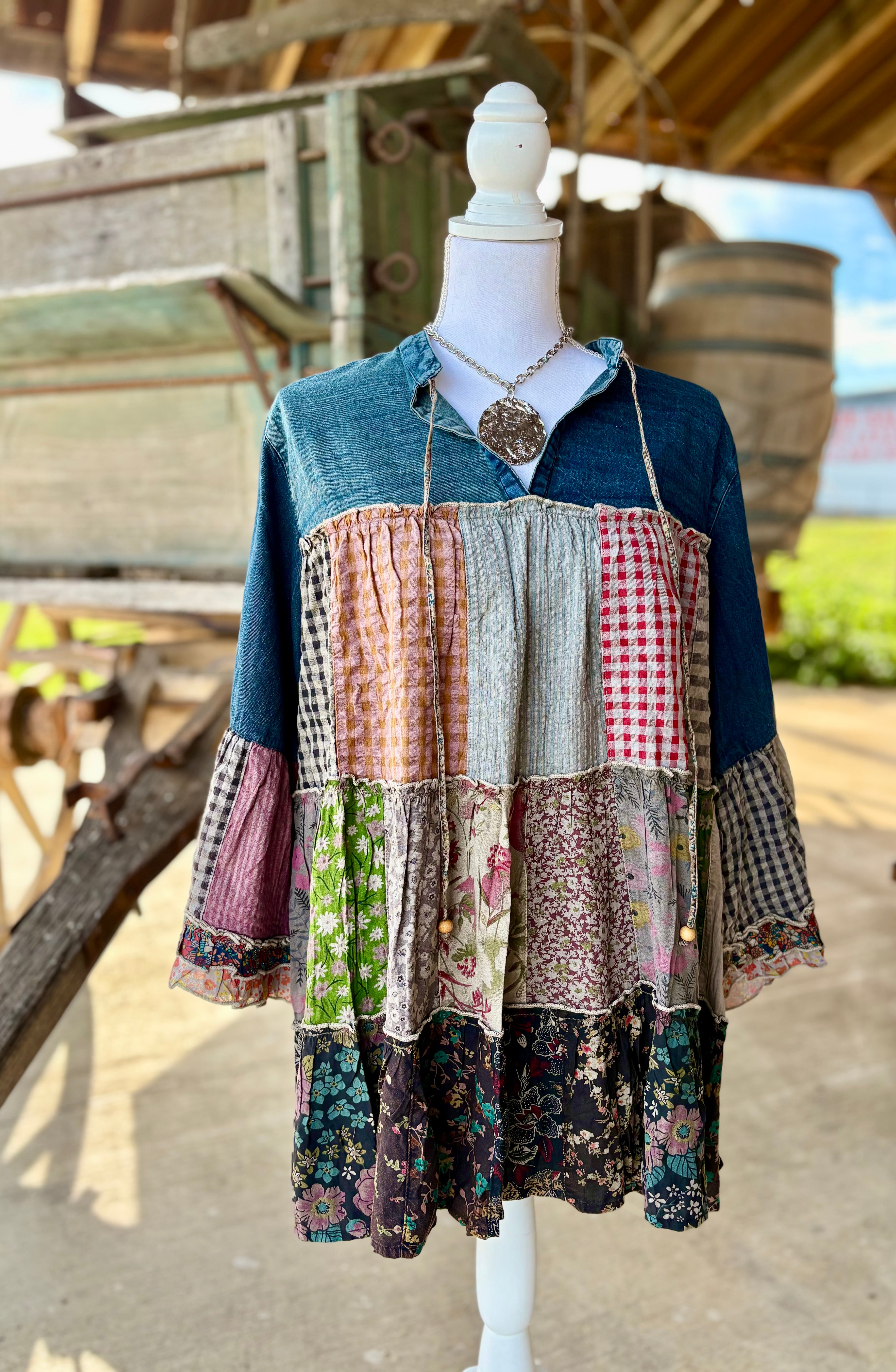 Rock some serious vintage vibes with this embroidered denim blouse. Perfect for adding a playful touch to any outfit, this blouse is sure to turn heads with its unique details and quirky charm. Get ready to show off your style and stand out from the crowd!